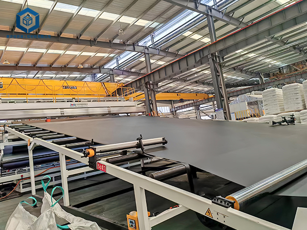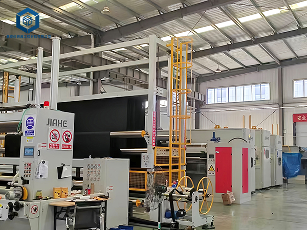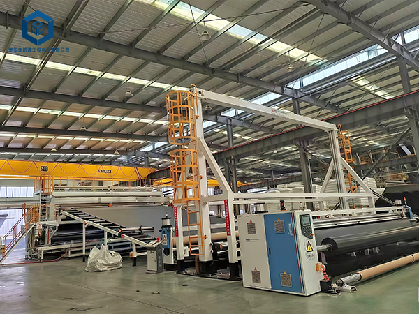 新增的压延土工膜设备作为国内第三条高端压延膜设备,凭借其多方面的显著优势,在市场上脱颖而出。该设备的产品规格广泛,生产厚度范围可达0.75-3.0mm,幅宽更是达到了8米,这一规格的提升不仅满足了不同工程的需求,更在生产效率上实现了质的飞跃,有效减少了接缝,提升了工程质量。同时,该设备还配备了先进的在线检测功能,包括实时防渗漏检测和厚度偏差控制,这些智能化的检测手段确保了产品的质量和均匀性,使得生产出的土工膜能达到高标准的质量要求。
